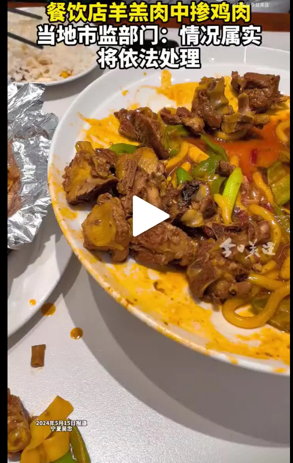 宁夏吴忠再通报“爆炒羊羔肉掺杂鸡肉”事件:拟罚涉事店铺1万元
