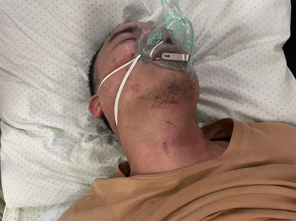 等蒋先生再次看到沈大庆时,他已经是被抬下来的,被打的面目全非,浑身是血。蒋先生第一时间拍下了沈大庆受伤的照片。