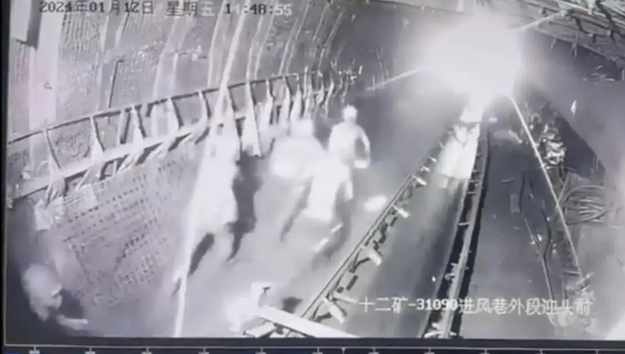 图为事发监控画面,工人拼命往外跑