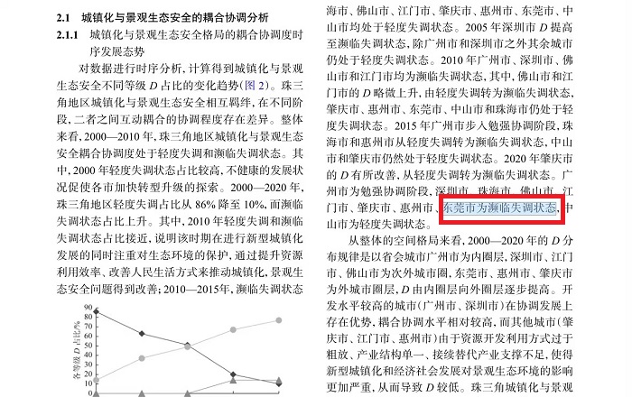 东莞市:城镇化与景观生态安全的耦合协调濒临失调状态,生态环境滞后型